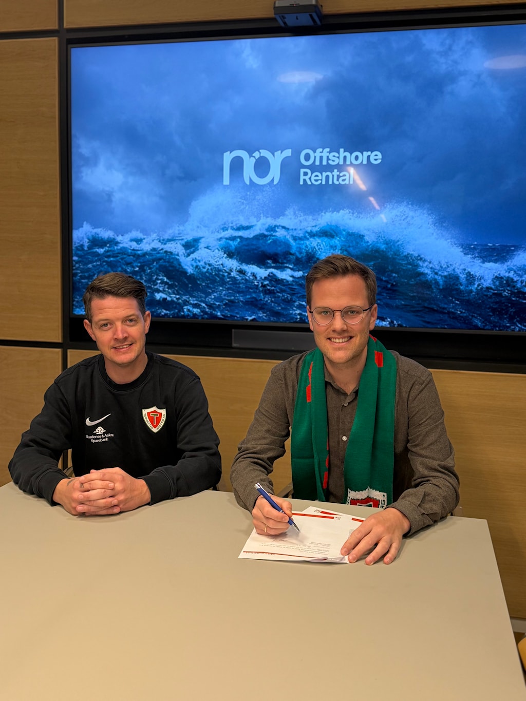 Espen Strand (daglig leder/Torvastad IL) og Gustav Nesse (Chief Financial Officer/NOR)